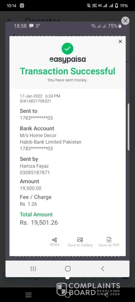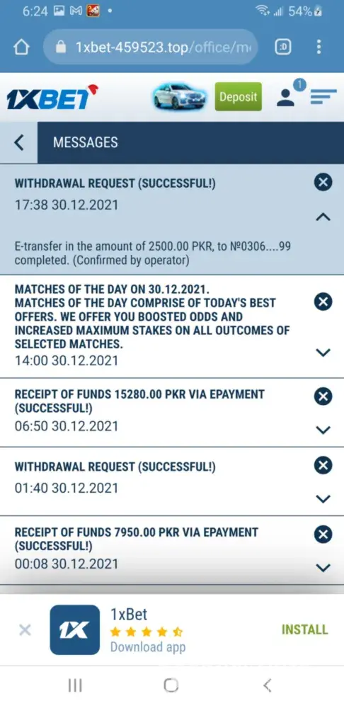 One more thing Last Week I make a Withdrawal of PKR2500 from Bank Transfer to Jazzcash but I just received PKR500 I spoke to the Customer Support about it he said that your complaint is fwd to the Banking Team next day I again ask the Customer Support he suggest me to write an email and Screenshots to [protected]@1xbet-team.com so I ďid and no reply from them than 3rd day I sent them another email with the fully details but no reply from them they rob my Rs2000 withdrawal and a winning bet return of Rs2335 Total they owed my PKR4335