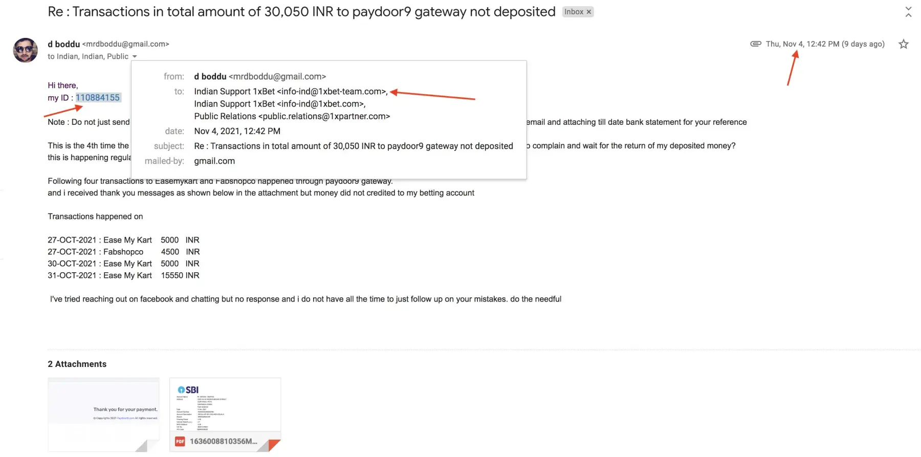 and i received thank you messages as shown below in the attachment but money did not credited to my betting account