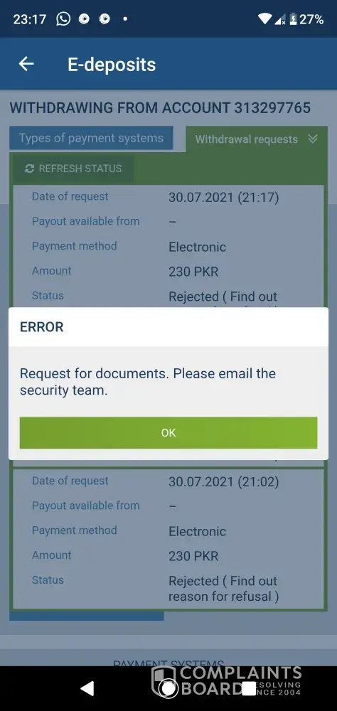 I've deposit by easy way but when i want to withdraw they asked me to verify my account and send my id and screenshots and I've done all instructions and they refused too