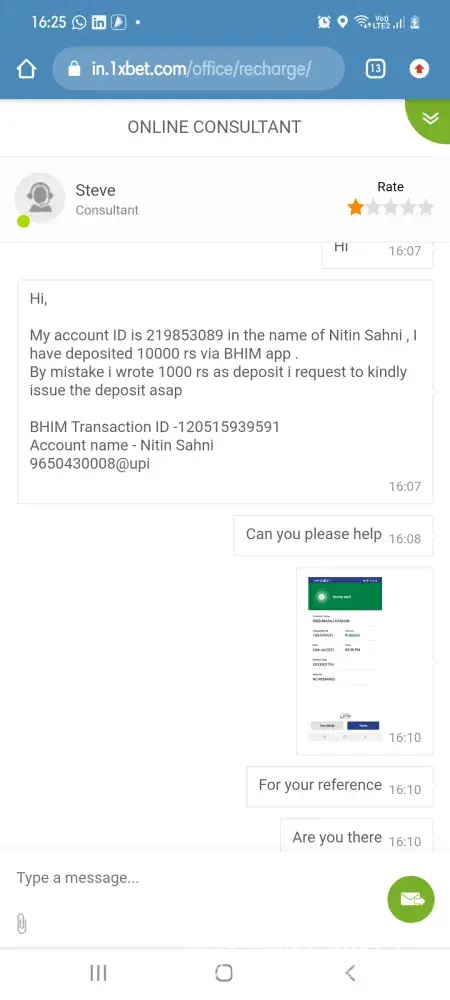 Gaming id [protected] 1xbet upi fast payment should be credited within 48 hours I am waiting from 4 days still not received payouts total 3 withdrawal amount was struck.. no response from 1xbet support only autoreply I will get.. customer support executive is completely waste they won't talk more then a minutes immediately they will disconnect the call without telling clarity I need my money plz help me.. I hve lot of trust on you guys hopeing my money to get back into my account asap.. total amount 8600