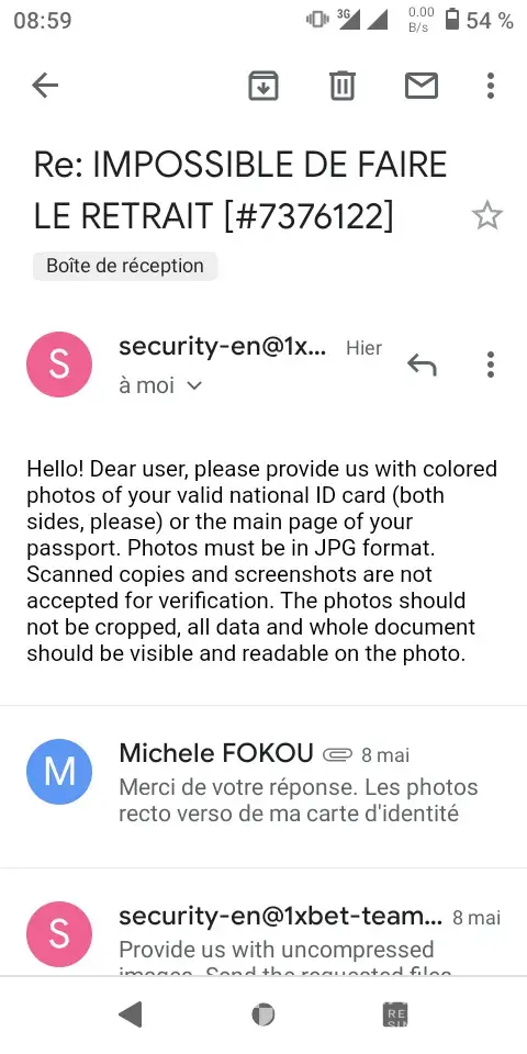 Here I have shared the full email conversation with 1xbet security team during my ID verification.