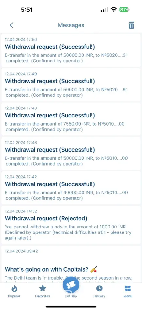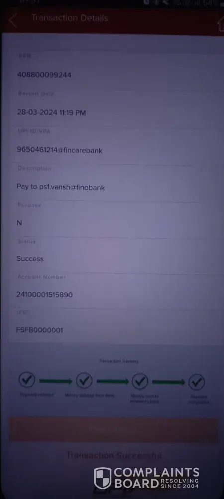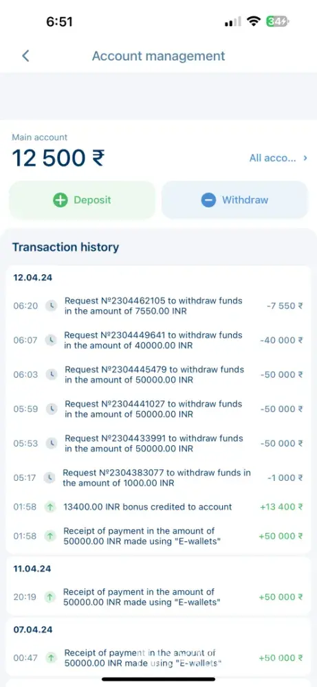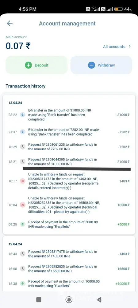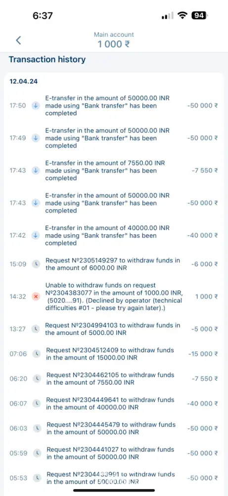 13/04/2024, I initiated a withdrawal of 31,000 INR from my account, and although the app displayed that the transfer was successful, the amount has not been credited to my bank account.