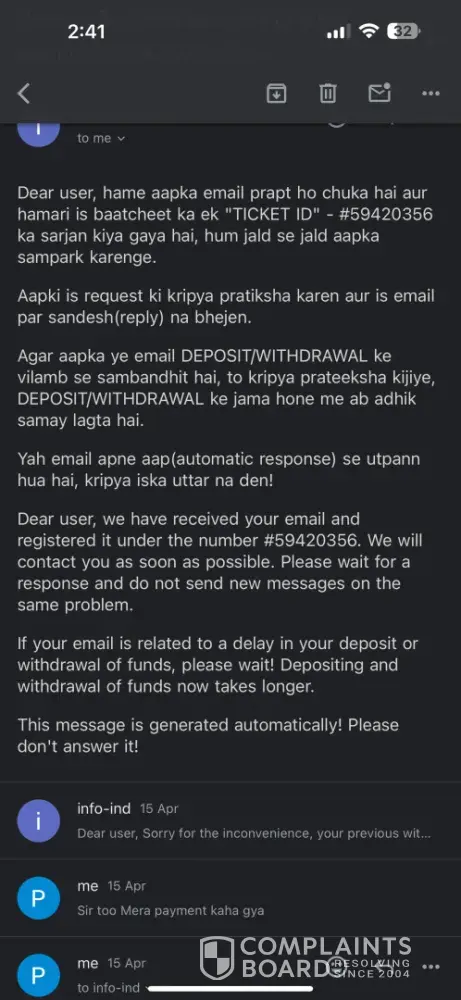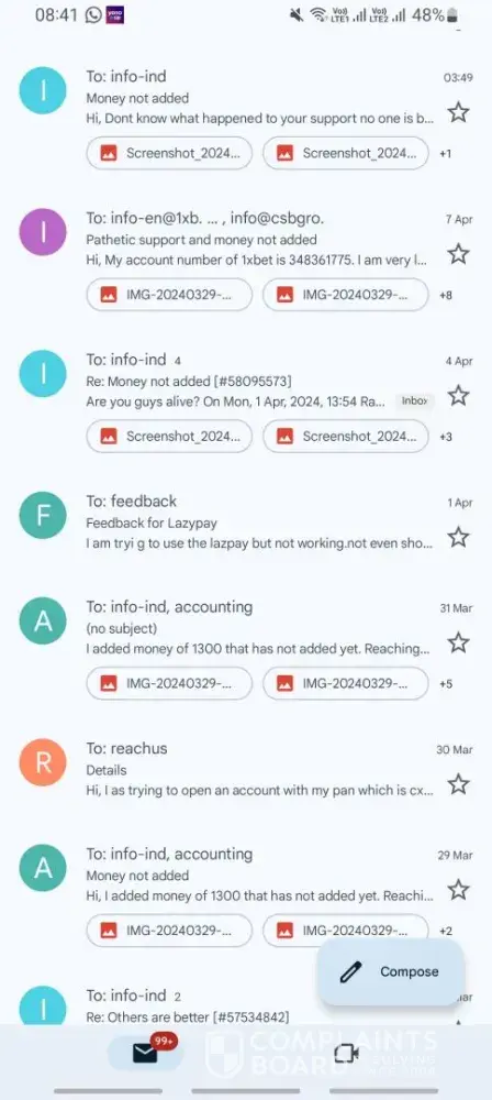 I’ve also deposited money Rs 500 to the 1x bet through the bank transfer but it’s not showing in the app and also the emails are not replied yet. I’ve deposited the money to their account today 13 April 2024 at 8:53 Pm. I’ve also the proof of payment