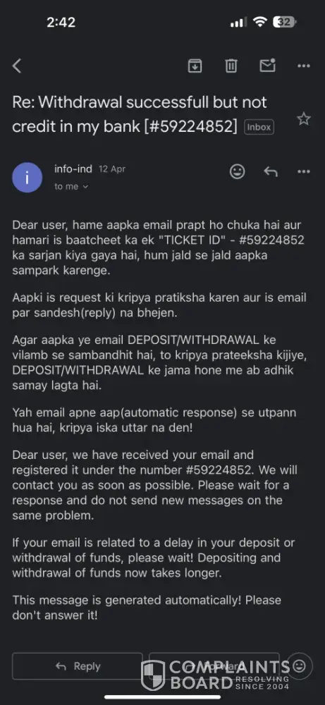 I contacted customer support and provided my bank statement as requested. However, since then, they have not responded to my emails, and I have scammed Rs. 31,000/- due to this situation.