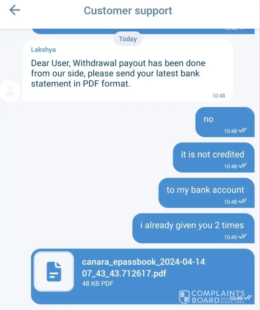 Still I did not Recived in my bank … I also shared bank statement in to your customer care