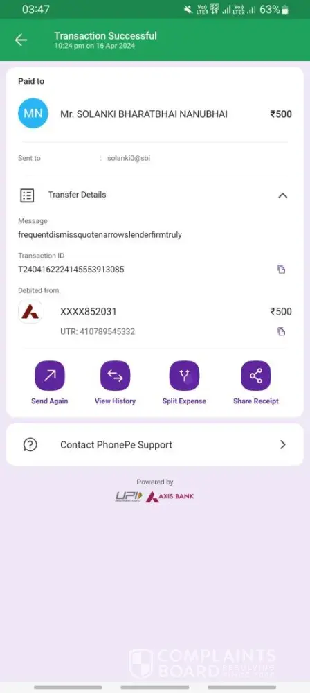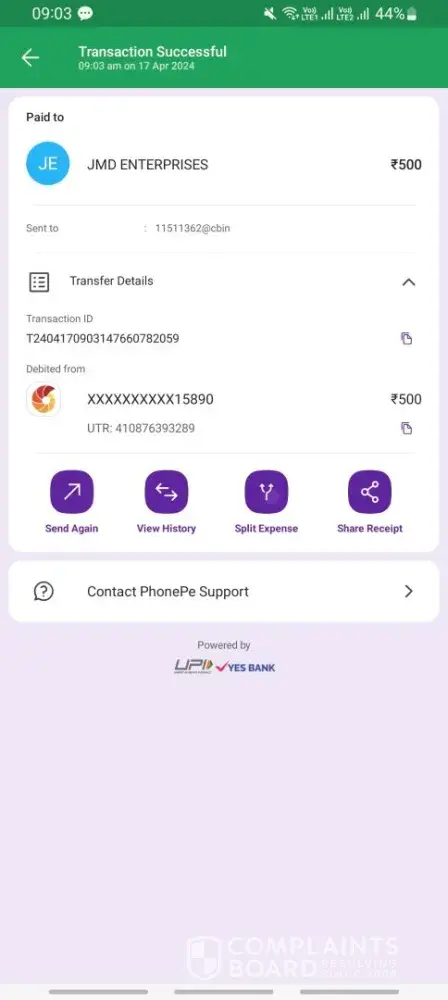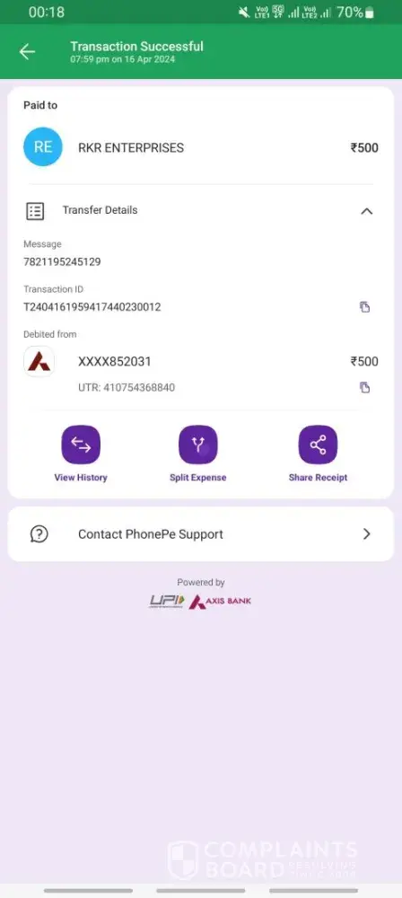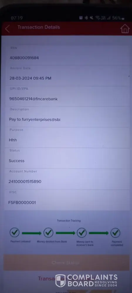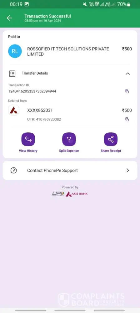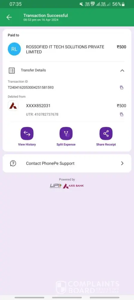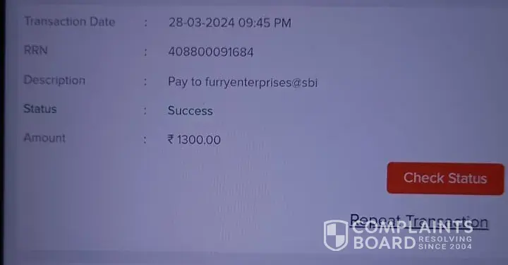 I have attached a payment Screenshot for reference and I hope the company will consider my complaint and do the needful as early as possible.