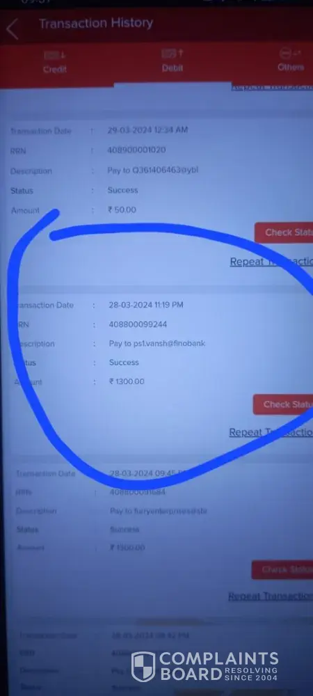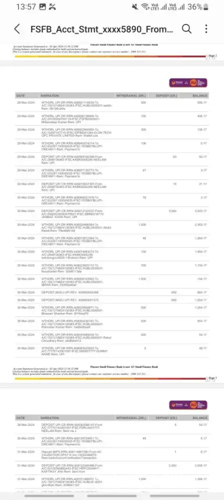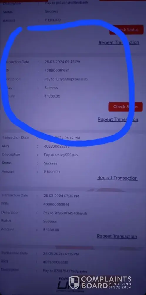 I already shared screenshot with you (see above). I will share it once again. i contact customer support and they are telling this problem and they tell it is already credited and given the utr number: FDRLM8104689290. But it was a fake one.
