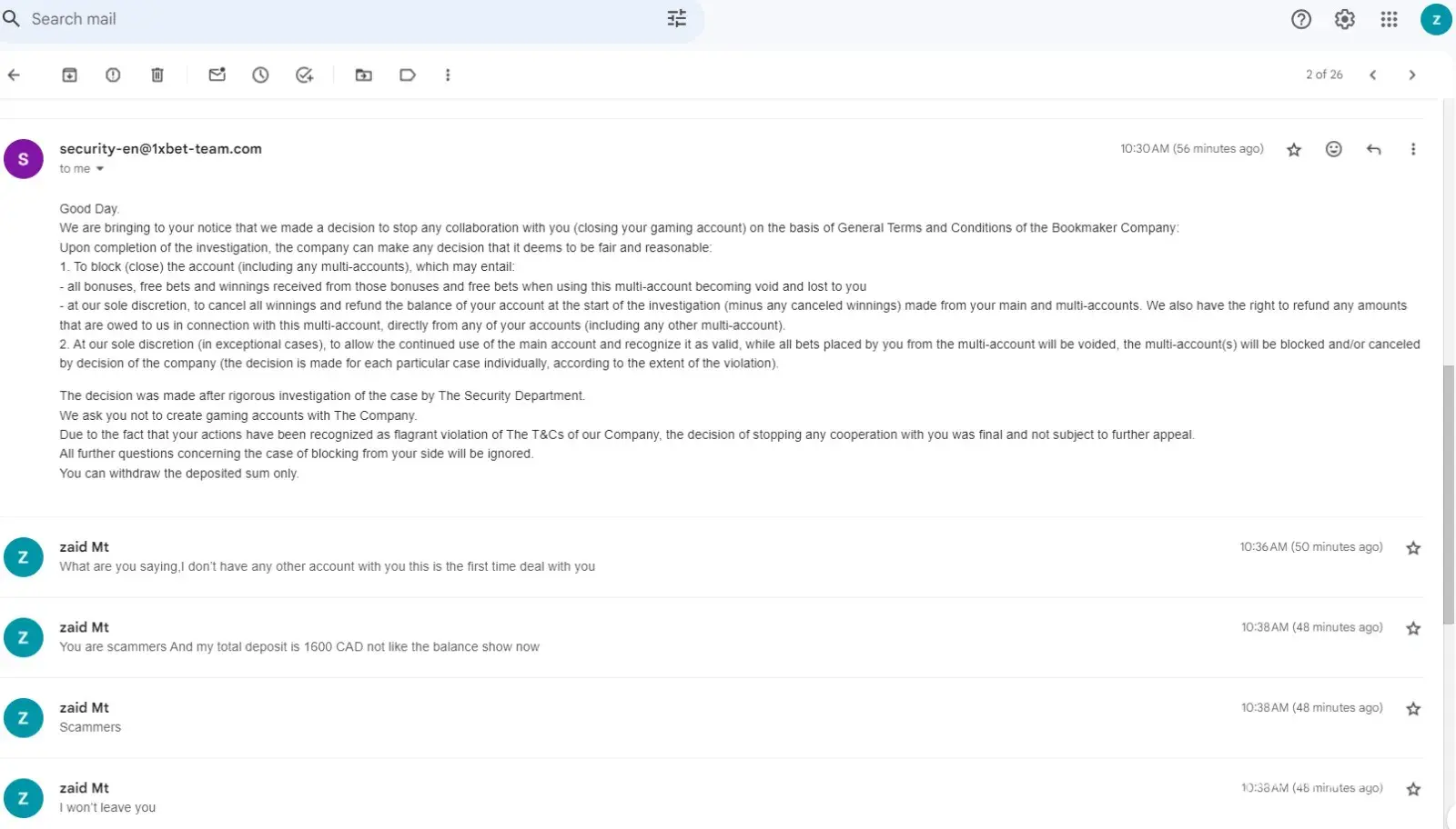 I assure you I will not stop and it’s not for the money. There’s a total lack of respect from 1xBet to their customers.