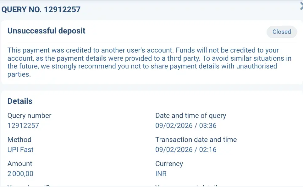 I deposited ₹2,000 into my 1xBet account using PhonePe two days ago, but the amount has still not been credited.I have reached out multiple times through the payment query section and live customer support. Every time I contact support, I only receive generic template responses. When I followed their instructions to create a formal deposit request, the system simply directed me back to contact support again, creating a frustrating loop.This issue has been ongoing for over 48 hours with no resolution or meaningful assistance. I am now left with no choice but to escalate the matter by filing formal complaints against the platform.