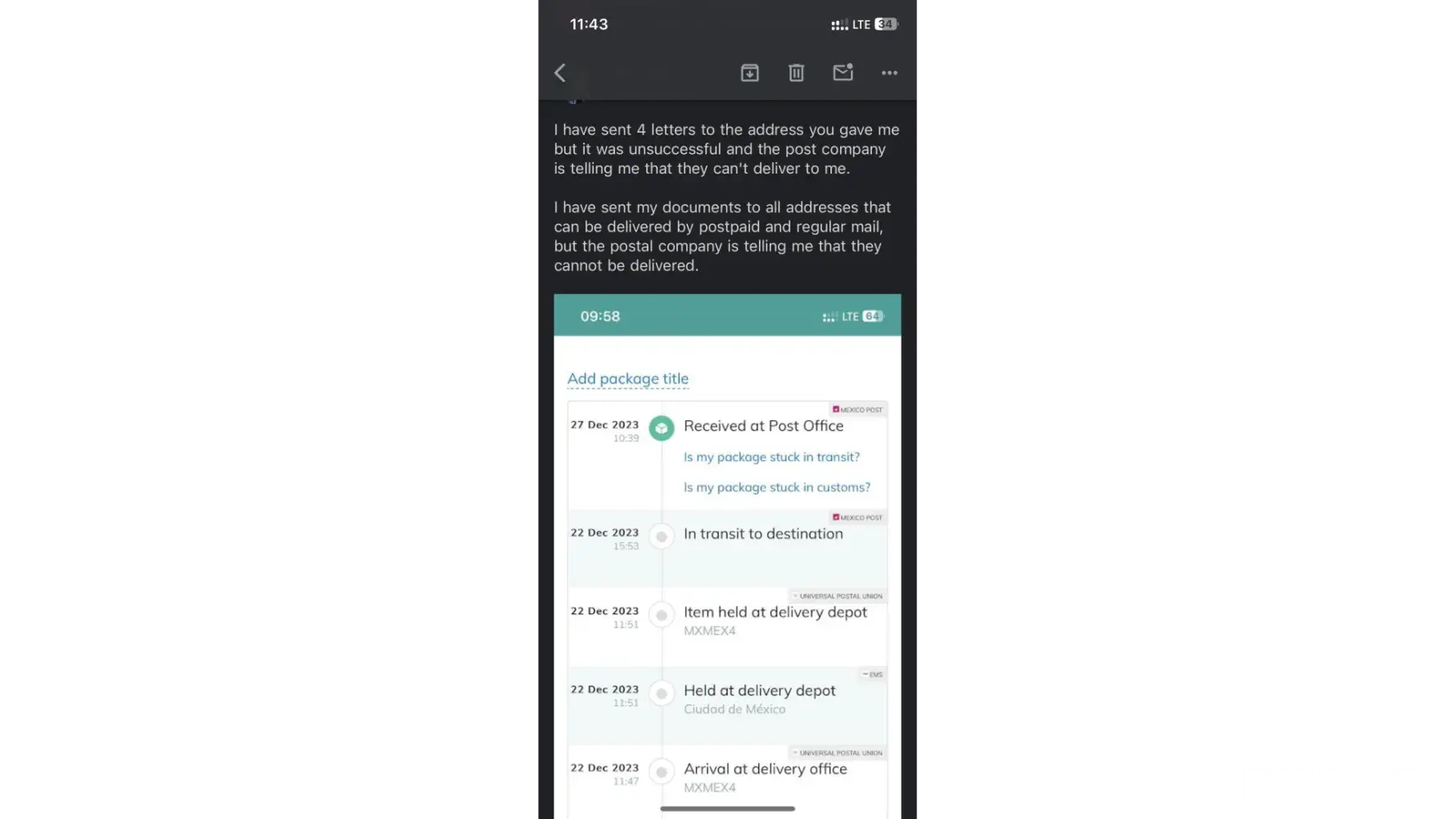I have sent my documents four times and they cannot be delivered to my address. I am documenting this problem. Why are you not considering my problem with respect?