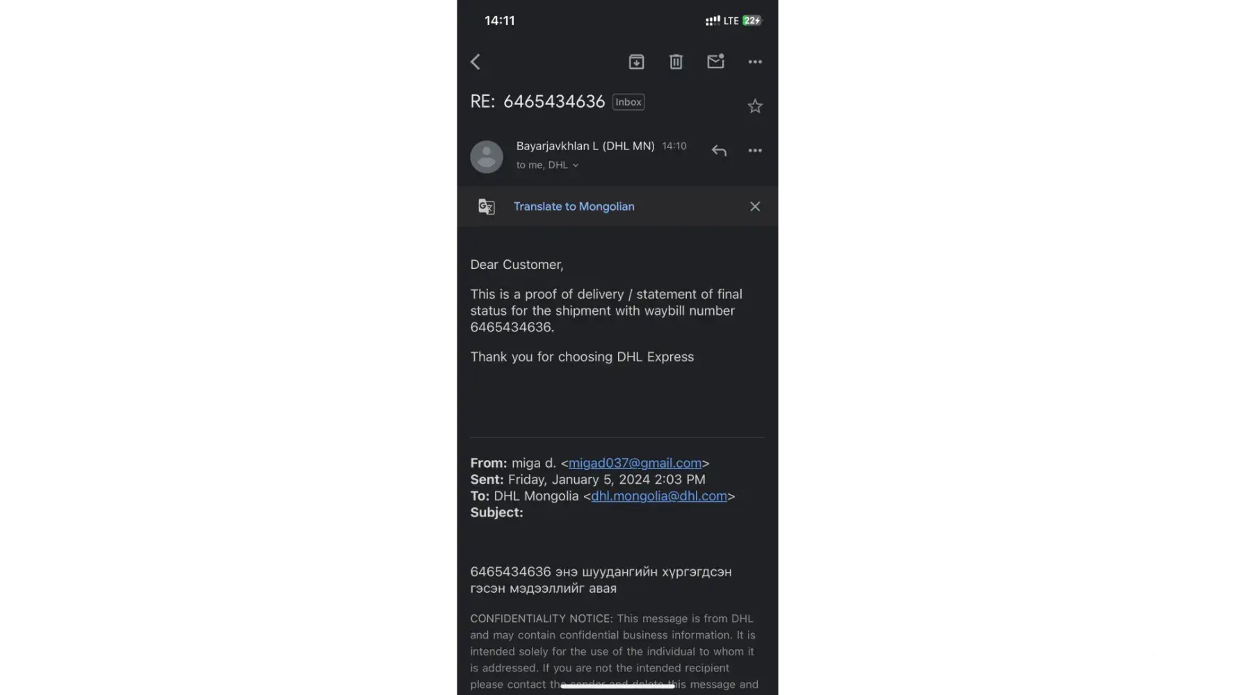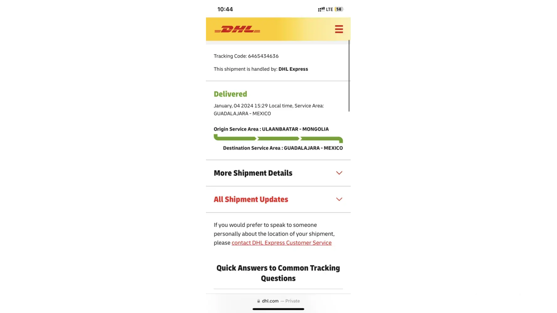 DHL has informed me that my package has been successfully delivered, have you received my package?