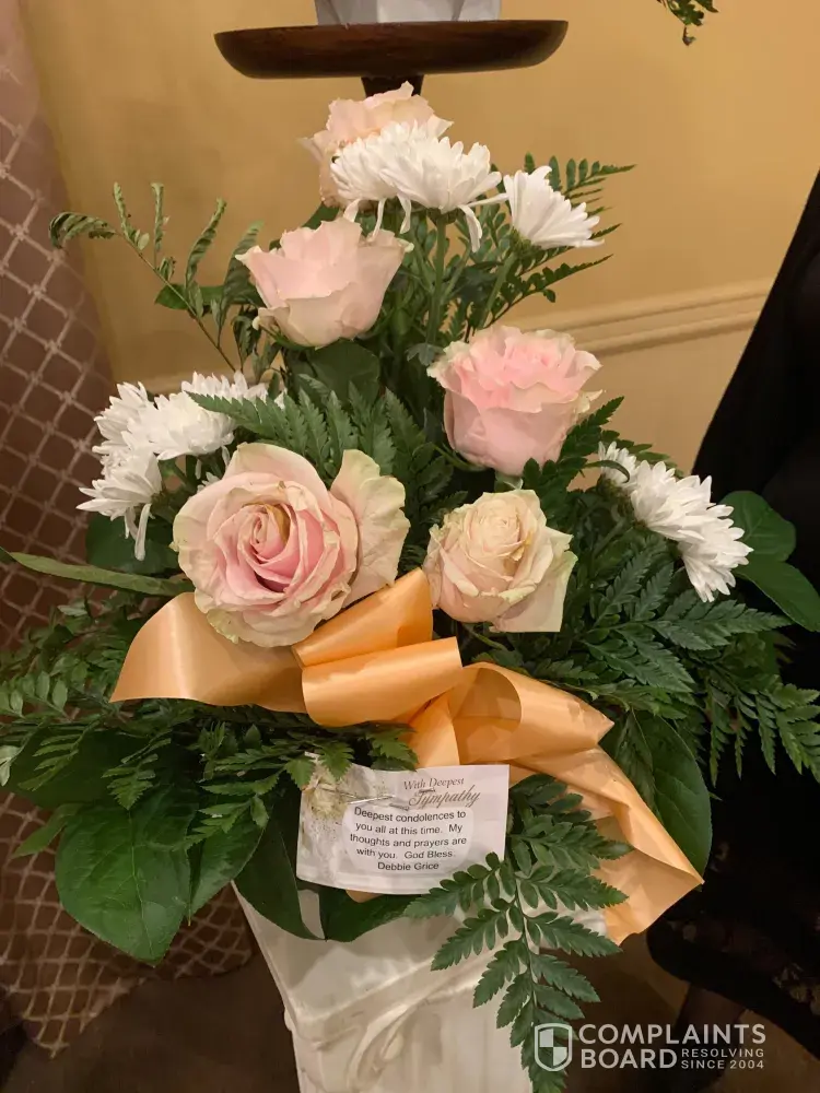 I am embarrassed, disappointed and disgusted at what was delivered to a funeral home! I wish I would have checked reviews before I did... Photos of 'what should have been' and 'what was'. And they are standing by their claim that the flowers sent were of a higher quality and there were more roses than the picture, etc. No refund is offered unless I bring them back. Yeah ok!