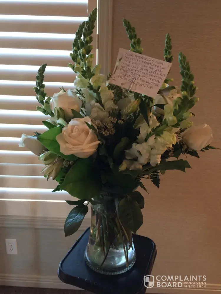 I wish I had read the reviews before I ordered. 0 star supposed to be! I ordered standing flowers for funeral I was disappointed when I was received my order not exactly from the picture. Not even closed the picture either and flowers not fresh. It doesn’t matter if you have substitution policy but you have to inform your client (as a good customer service).