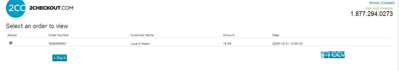 I used this link: https://www.2checkout.com/va/sales/customer/detail_sale from 2CO.COM to get information regarding the "order" for which I was fraudulently charged. It returned one "order" for $18.95 for a customer named Joye N Hearn (not me or anyone I know); made 5 years ago.