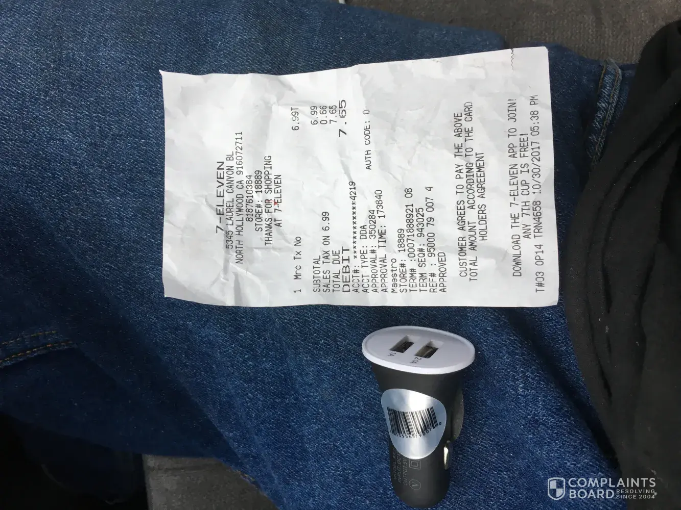 I bought a USB port for my car on 10/30/17 around 5:38pm at 7 eleven store# 18889 location on 5345 Laurel Canyon Blvd.North Hollywood, CA, 91607.I came back to return it today 11/02/17 but they won't give me my money back They said it's non refundable but no where on my reciept does it say the item I purchased is non refundable please help me with this issue my name is Ernie Lozano my number is(323) 963-0491 my email address is [protected]@yahoo.com.Thanks