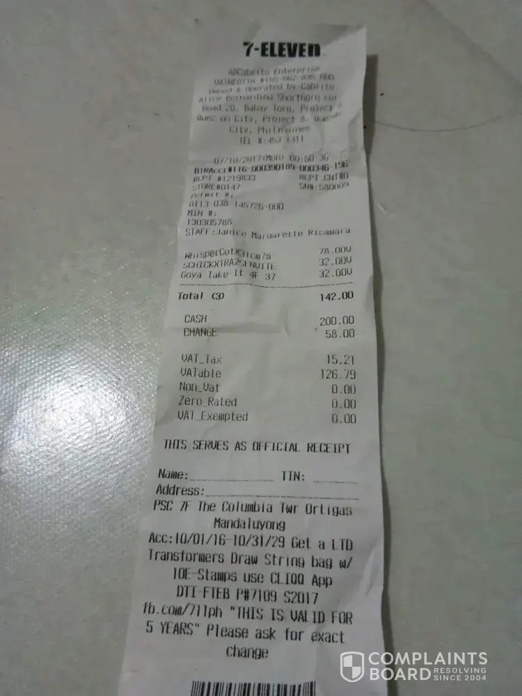 I want to complaint lang one of your employee Janice Margarette Ricamara at 7/11 Road 20, Bahay toro Project 8 Q.C. Routine ko na halos everyday ang bumili sa brnch na yan. Monday 12:50am bumili ako after kong mamili nagpunta na ko sa counter then ito si Ms.jnice ni greet wla since snay na ko na gnun ok lng.. Then ngulat ako sa amount n bbyran ko ksi wla sa tamang lagayan pla ung product na yun sbe ko pki void na lng nag sbe sya na