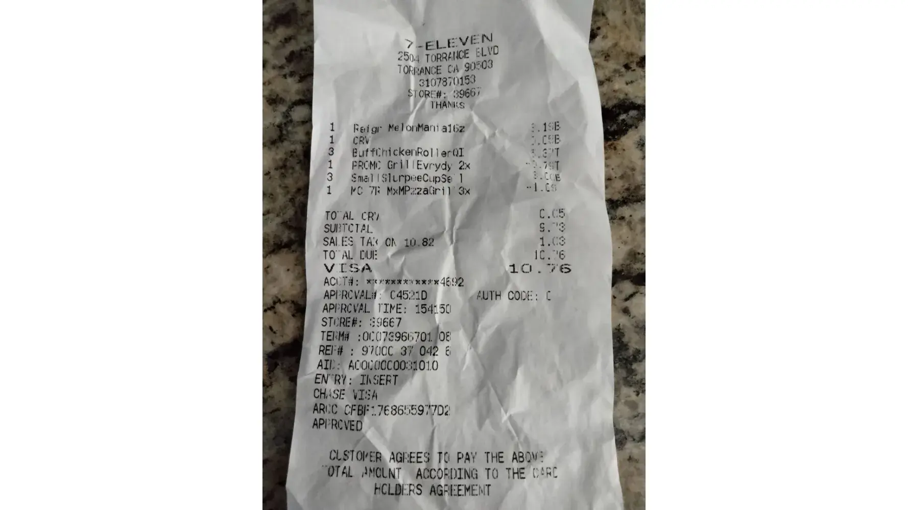 Today at 3:40 pm I stop at the 7 eleven in Torrance store # 39667.
