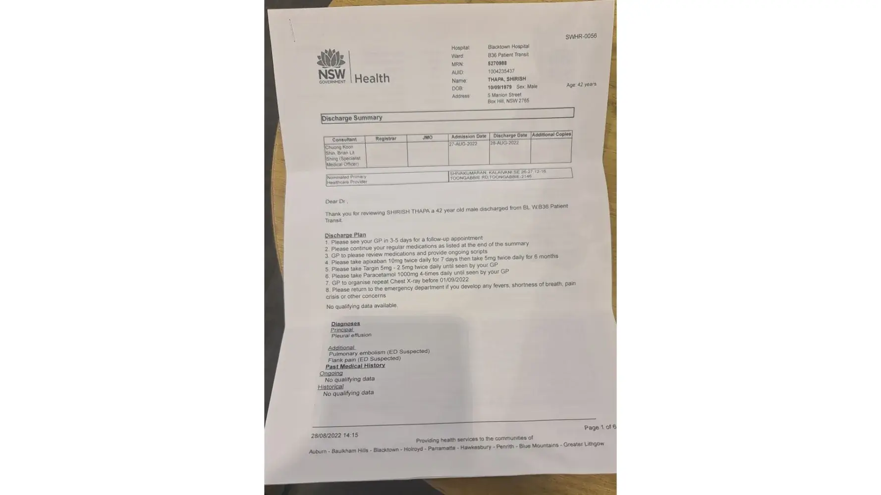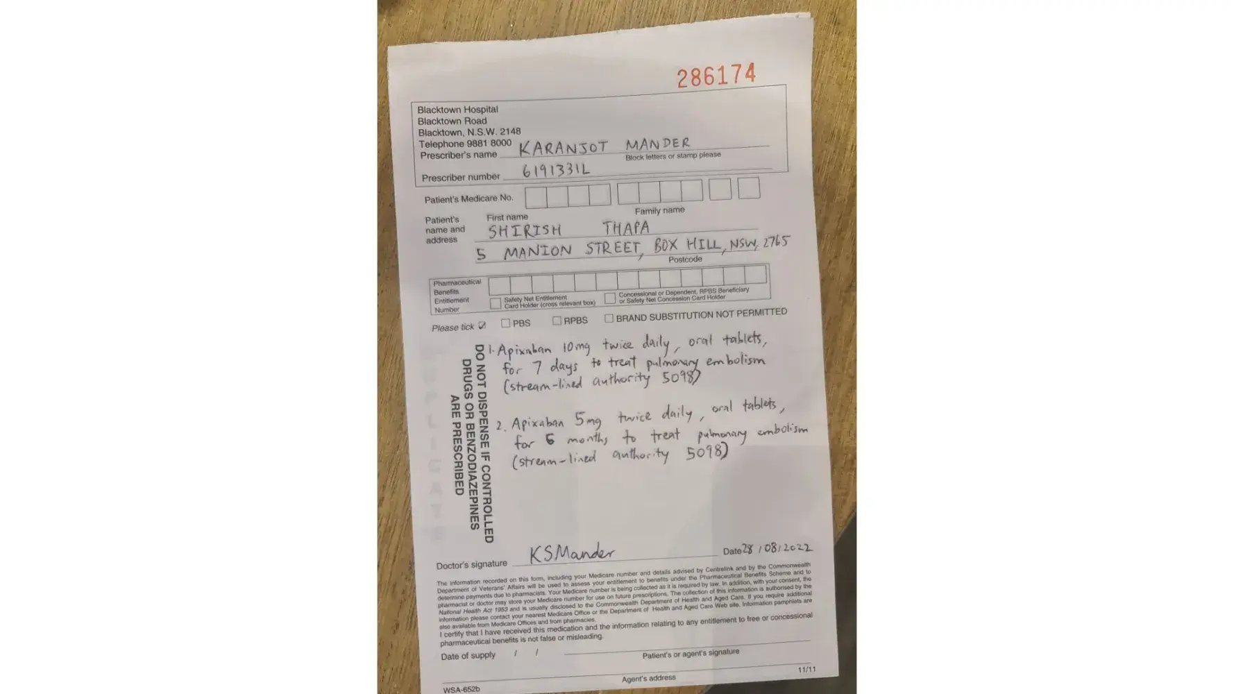 My medication is very serious. It's blood thinner for blood clot in left lung.