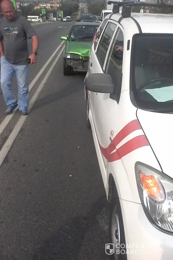 This is my car after the accident one of breakdown guy appears and Usk if he can tow it and I refused but he cept on convinced me that he works with my insurance com and he is always doing that all times, then he pretend he was calling my insurance com after a call he said my insurance said he can tow it, i told him it was my first time involved in an accident and don't knocked how this things works, then he said I must not waried he will do anything until my car is fixed he promised me he is going to call me as soon as the car is fixed, but he didn't, one day I find him again and he send me to 91 banfield Roodepoort where I thought my car is being fixed, I usk some one at the office that I was there to fetch my car, but the story was very different from what the promised me, his name is warren he drives silver grey Toyota hilux v6 without any company names or stickers he always operated corner of malibongwe Dr. & veetkopen in north riding, and all im using for now is my car back which I'll fix it by my self