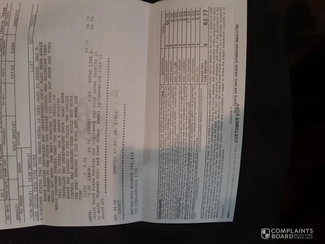 Read full complaintLabor fees
