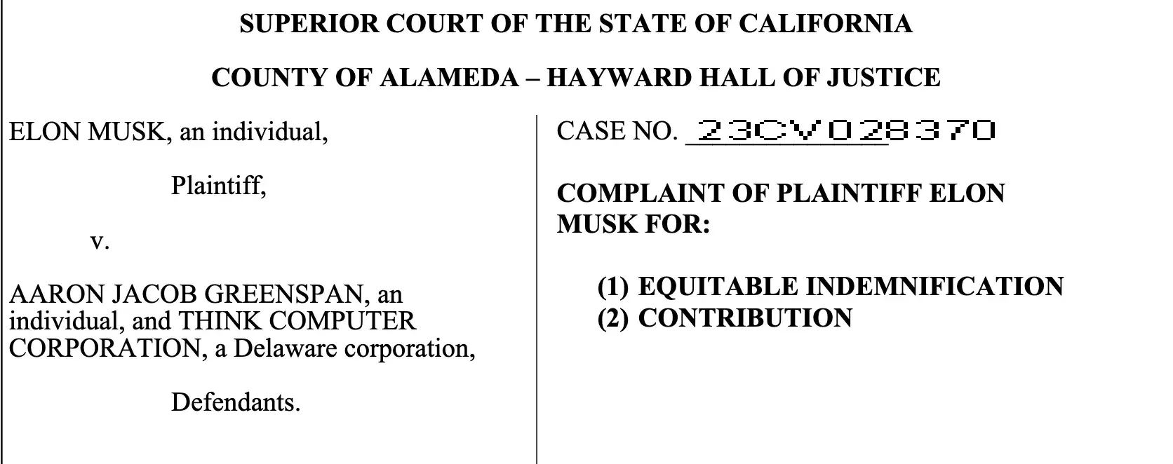 Aaron Jacob Greenspan also known as Aaron Greenspan has now been sued by Elon Musk at the Superior Court of California, County of Alameda on February 24, 2023 Unlimited Civil Defamation Slander/Libel.