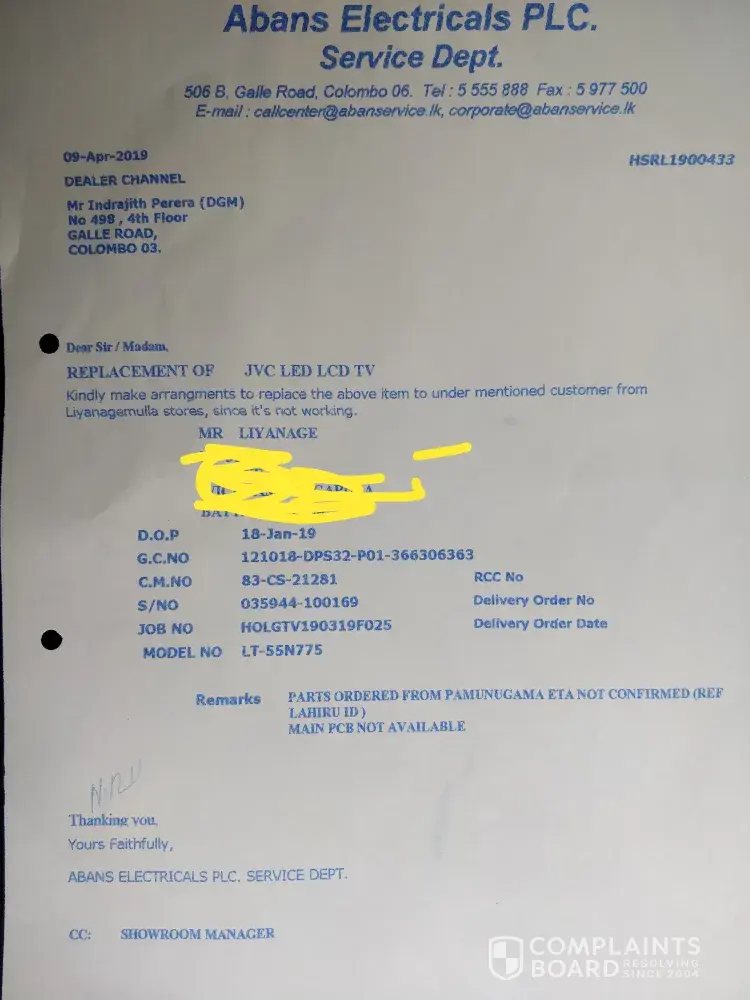 Handed over to abans for repair nearly month, no favourable response yet