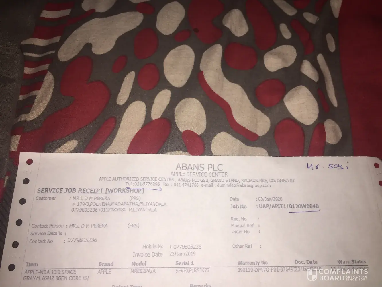 Abans.com About repairing delay of my macbook air 2018