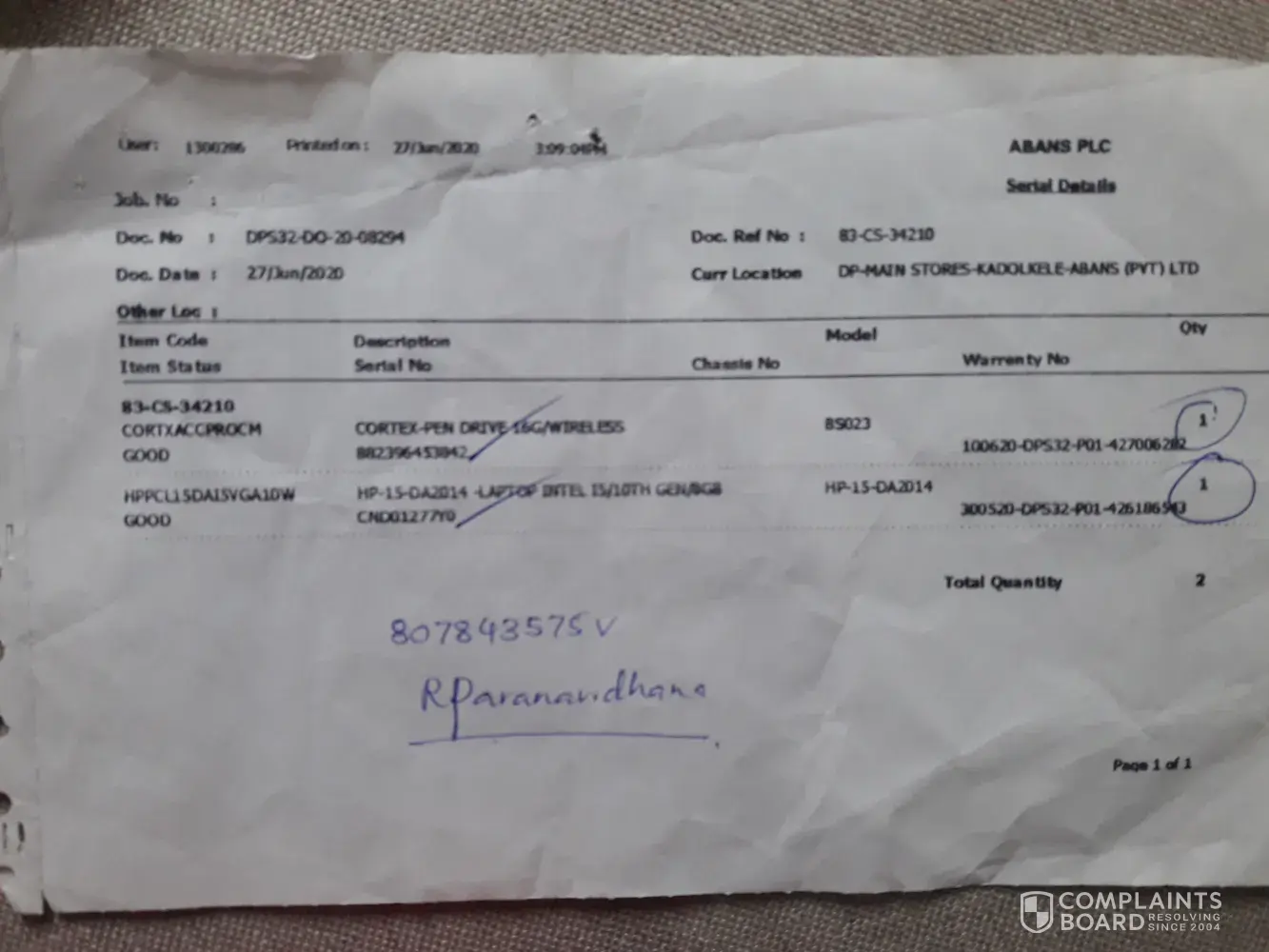 Abans.com Laptop purchase - C0047061
