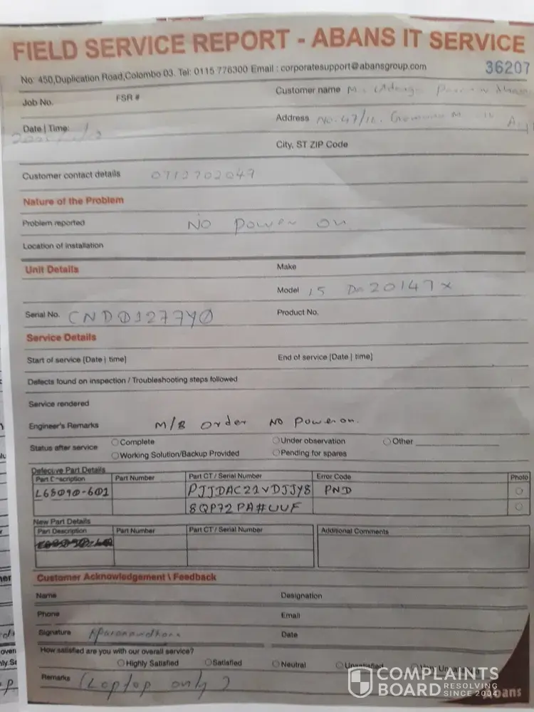 I bought my Dell inspiration laptop from Abans online shopping and after 6 months it was not working. Then I handed over to Abans IT service at Colombo 03 on 09/08/2018. They assured everything would be finished in two weeks but still it was not done. I am really disappoint about delayed service of Abans IT service center.