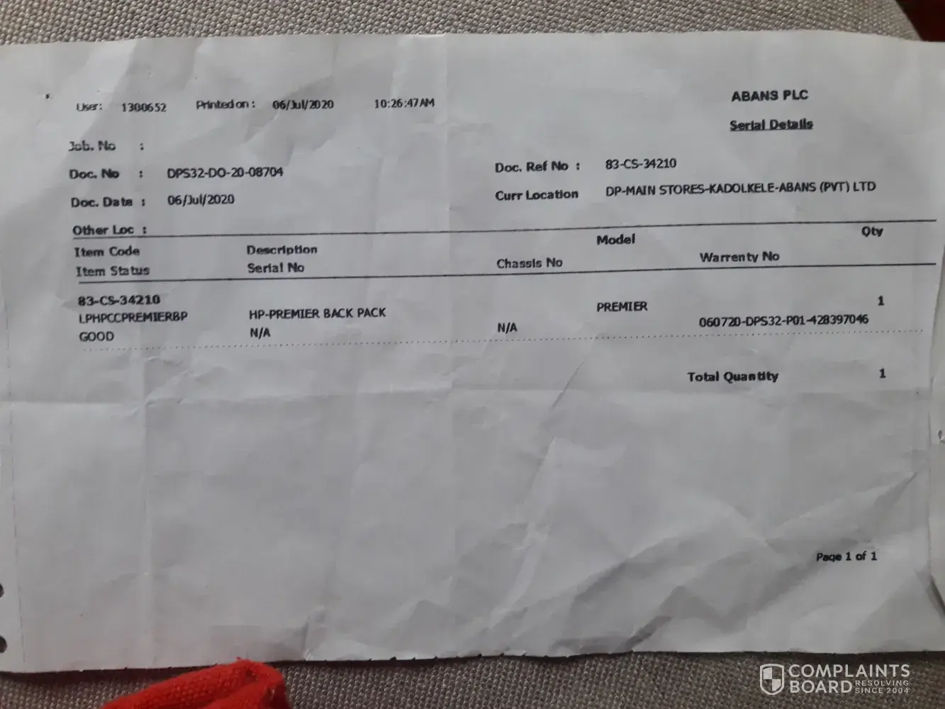 I have purchased a laptop through buy Abans online store (order No 39921) & It was delivered on 20th Nov 2020, but the Laptop bag was missing & When I asked about it, they said it will come as separate & I wait for 10 days but not received.