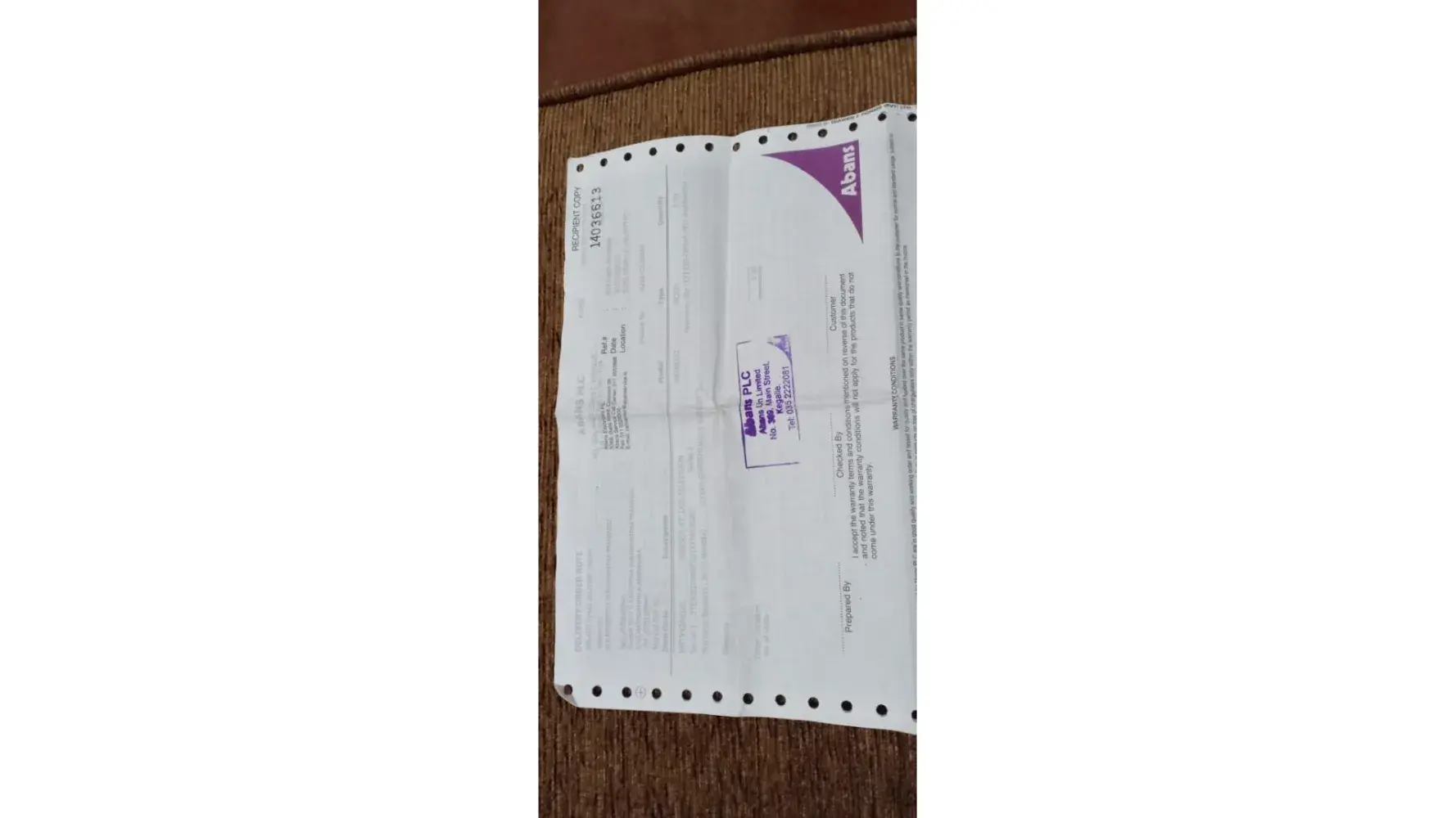 . It as TV panels can not be replaced, If replace cost would be more than the value of new TV and suggested to buy new TV with 10% discount. Then I call the call center of Abans company in Colombo and told this problem.