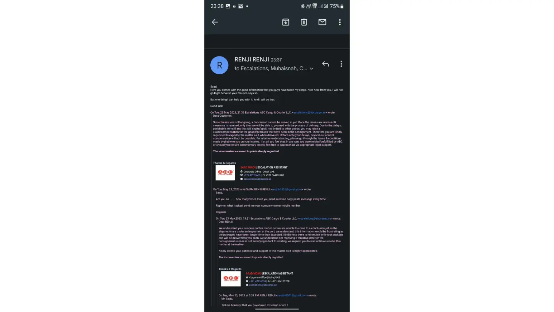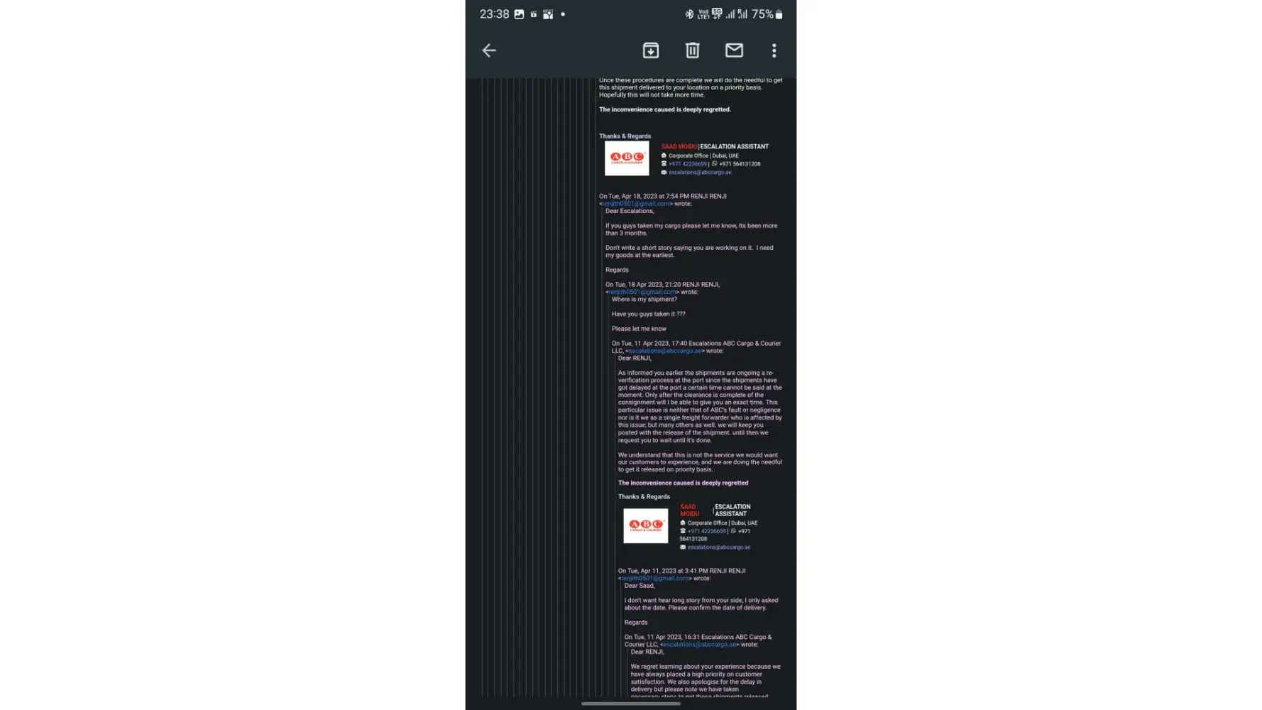 And I have seen reviews of other people suffering from similar issues, So ABC Cargo guys don’t reply back only on review attaching your email ids showing your fake concern by claiming to resolve the issue, As I have already contacted each and every one of you.