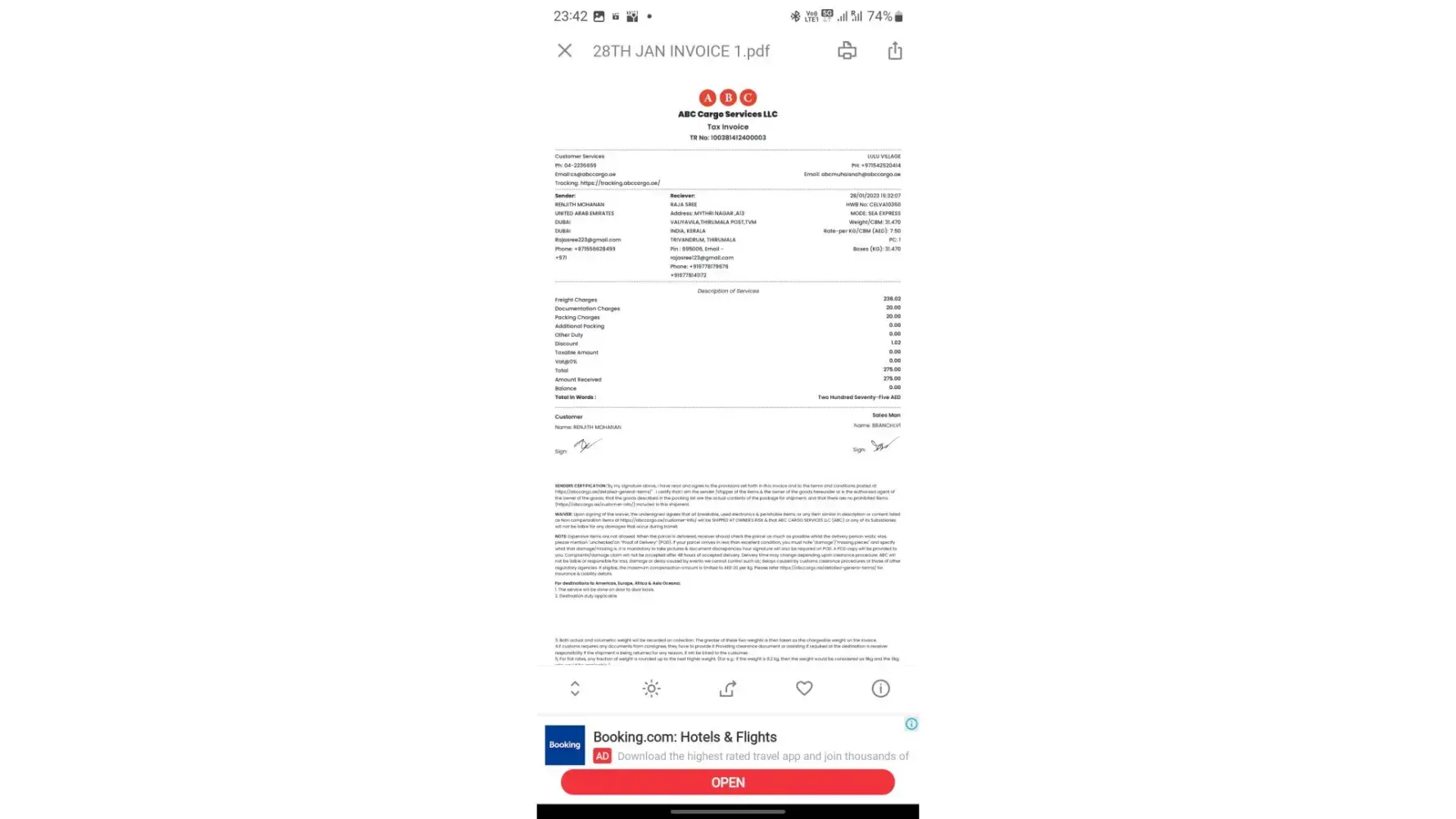 I've sent three consignments containing household items, educational books of my sons and other valuable items through ABC Cargo on June 24, 25, 2023 and another on 29 June 2023.