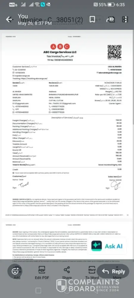 ABC Cargo is a complete scam. My shipment has been undelivered for over three months, and despite 100+ follow-ups, they finally claimed it was lost. Their “compensation†of 20 AED per kg is ridiculous and doesn’t cover the real value. Many others have the same complaint, showing this is a recurring problem. Avoid this company at all costs – they are dishonest and untrustworthy.