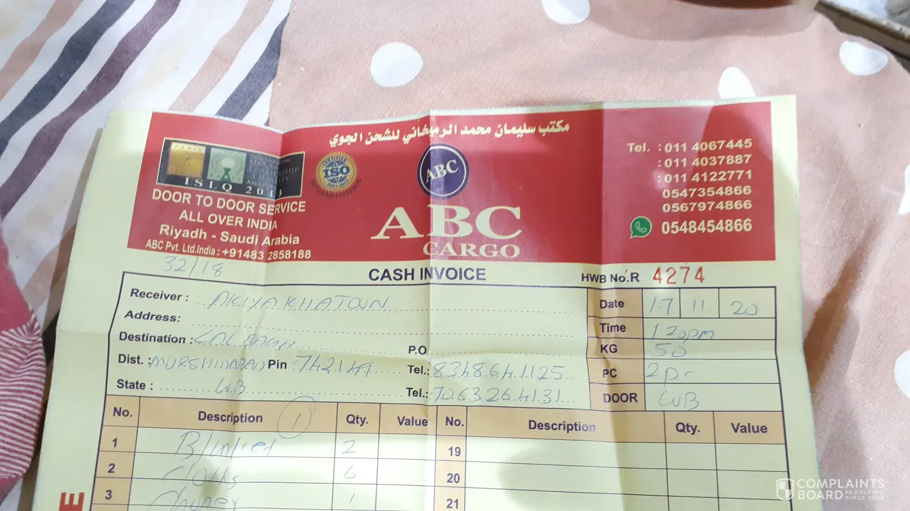 I have sent almost 145kg of very important essential via ABC CARGO BATHA KSA