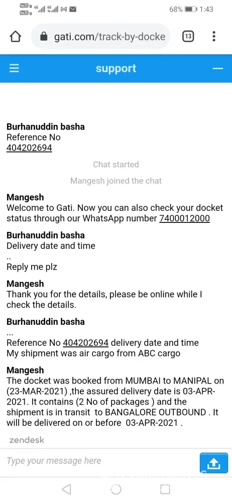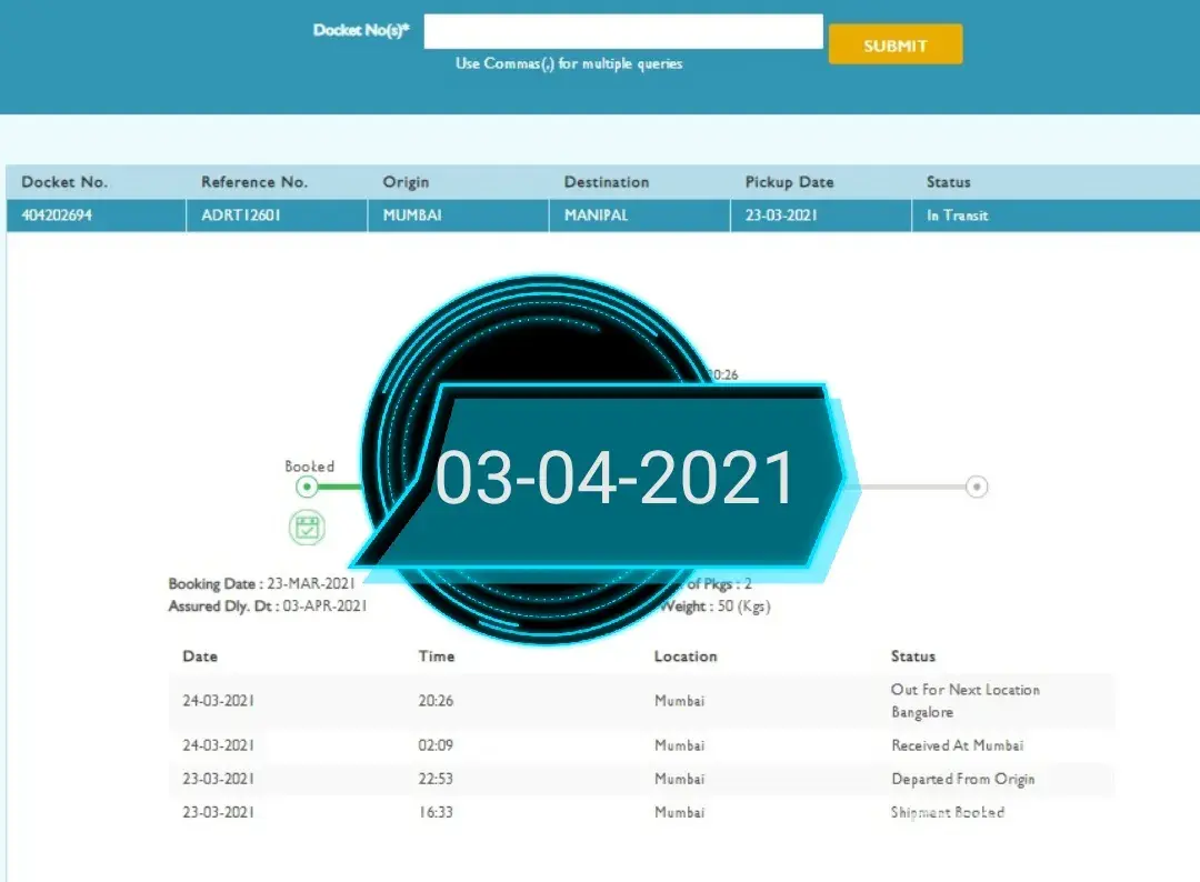 As per gati estimated delivery date 03 April 2021