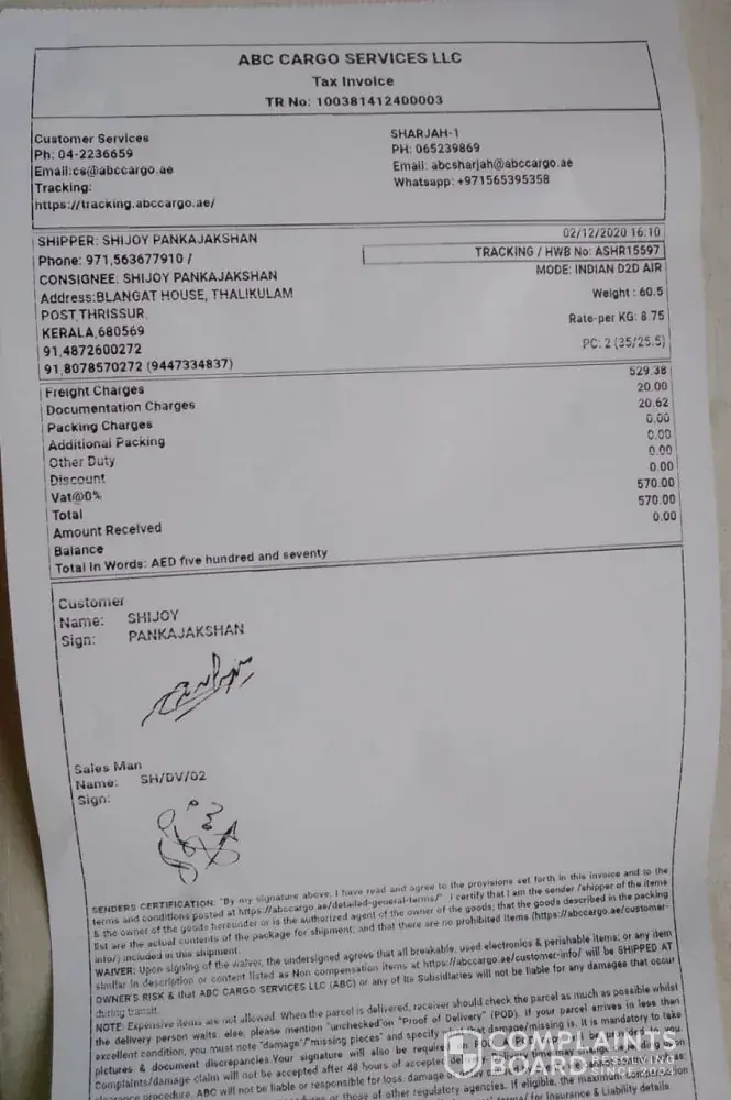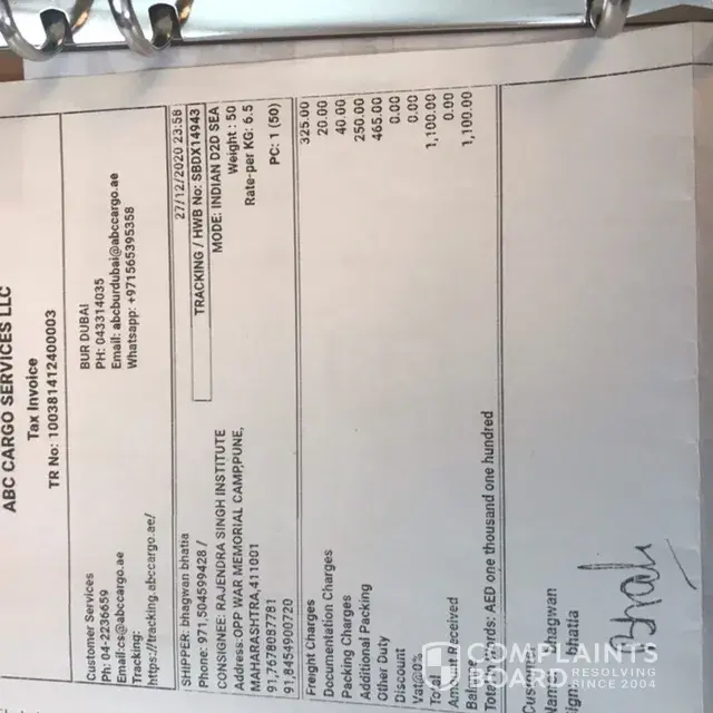 The purpose of lodging this complains is to forewarn all the customers who have plans to ship their cargo. Never think of using ABC Cargo Dubai as they as truly freight charges and thereafter customer is at the mercy of ABC
