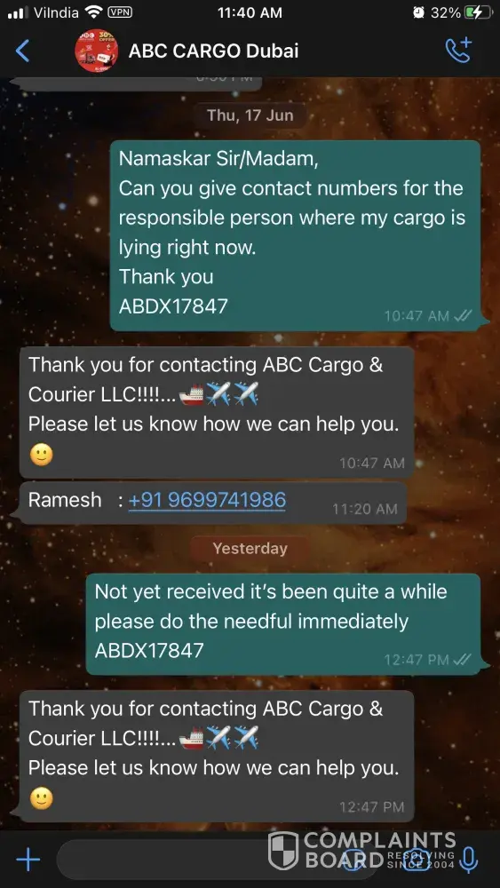 AFJT80937 - ABC Cargo poor customer service - 4 Months my consignment haven't reached to India