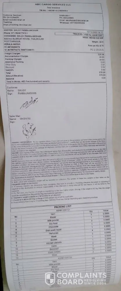 I've sent an Air-cargo of 2 boxes via ABC cargo on 2-December-2020 from Sharjah-UAE to Kerala-INDIA, they promised me delivery within 24 days, those are not yet delivered till today on 10-July-2021 (total now 7 months & 9 days are over), I'm totally upset about the foodstuffs that may be expired and loss of money!
