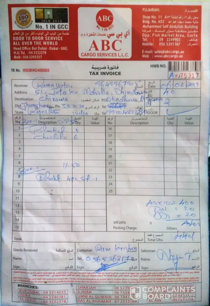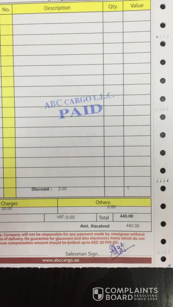Worst service ever. Don't choose the service from ABC cargo Dubai