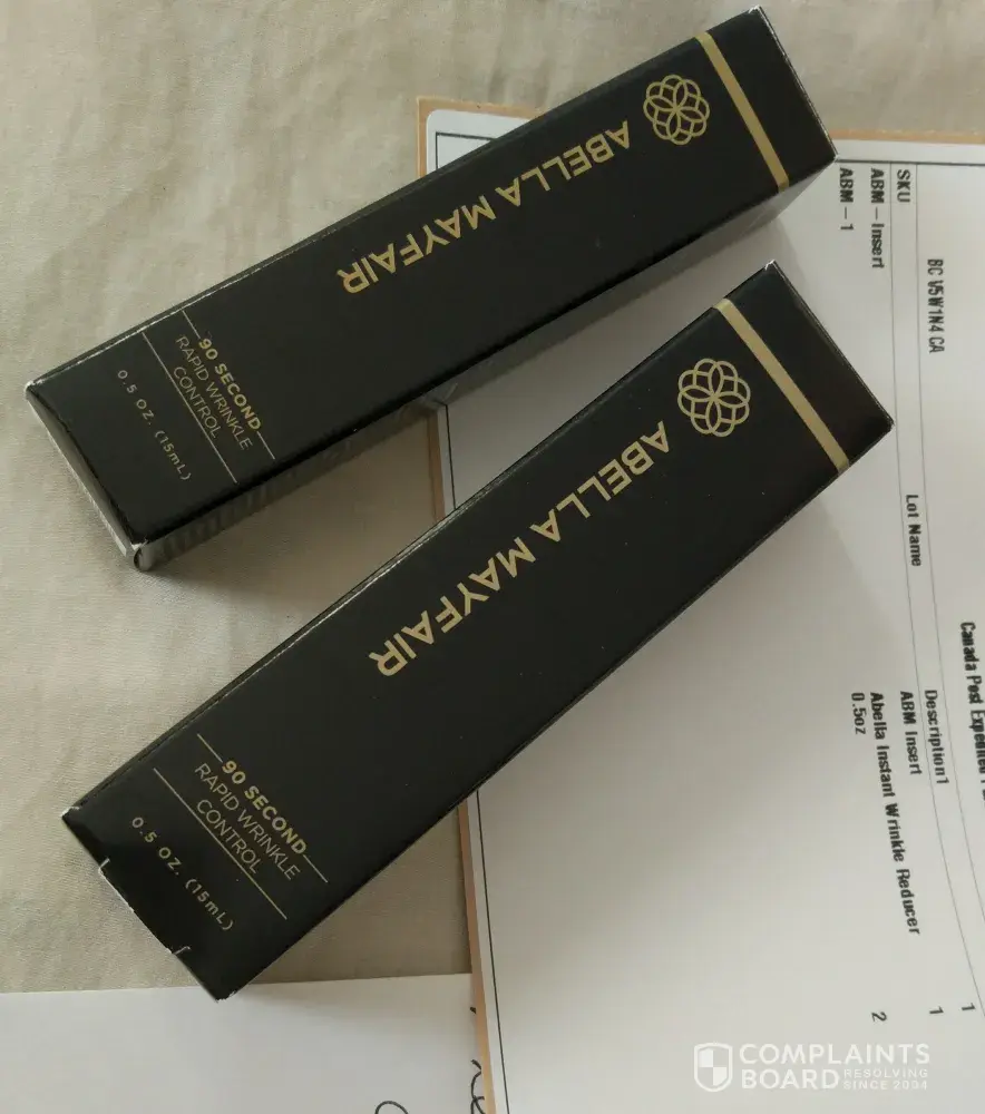 When my 2 very small bottles came in the mail a few days later, they were in the same box, although I paid separate shipping charges. There was no invoice inside and the insert encouraged me to buy their products. 14 days later I had 2 charges of $111.94USD and $100.74USD. I called the number on the confirmation, which was different from the one on the website referenced on my bank statement. The website didn't even say Abella Mayfair was the product, only the details of the promotion I was seeing for the first time.