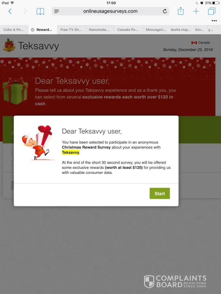 On november 20th, my internet provider (teksavvy) asked me to answered a survey in exchange of free stuff. I answered it and end up with a 260$ monthly subscription. Furthermore, the product they said was 0.00$, they charged it to me two weeks later (the full 260$). This is misrepresentation and it is not legal here. They partially refund me (half pf the amount). Moreover, they initially said I have 30 days to cancel and after they changed it to 14 days and I talked to a different person every email (I talked to at least 6 different person) which I had to explain all over again. I want all my money back and I want people to know to prevent this kind of scam.