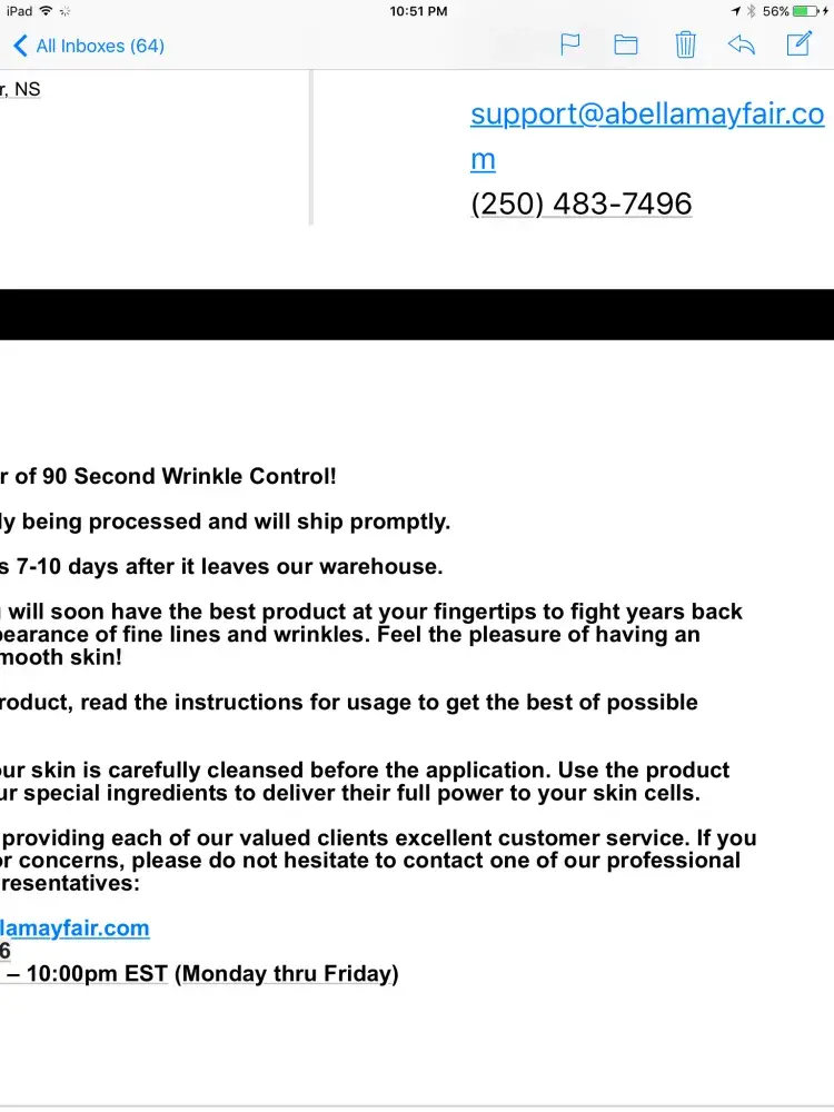 I do not expect any further product abella mayfair, nor do I authorize any further charges to my credit card. Despicable way to do business!