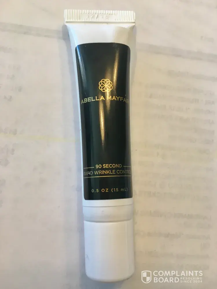 Back around january 15, 2017, I ordered via order #907910 a "sample" of abella mayfair product "90 second rapid wrinkle control". I received it in the mail shortly after along with a charge to my credit card of usd $3.95. I made no further order for any product, nor did I authorize further charges therefore on my credit card, yet I find on my february statement a charge from you of usd $99.95.