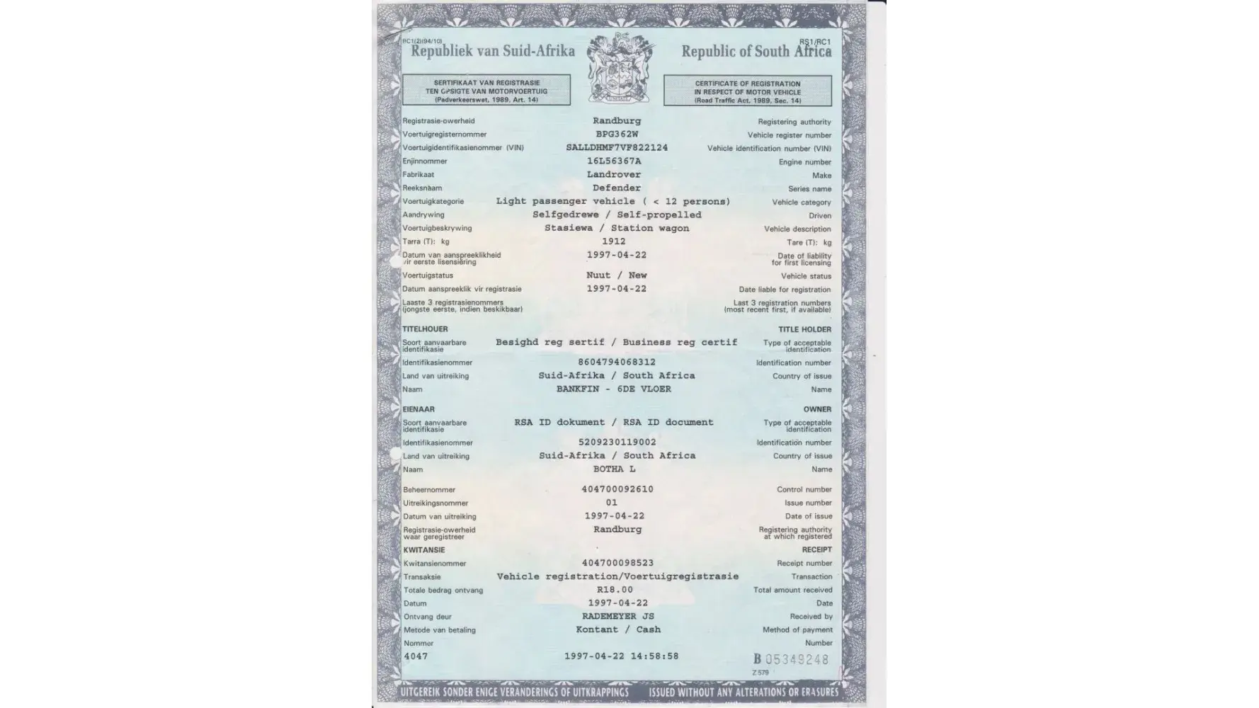 I sold my Land Rover Defender on 28 Dec 2022. I requested the proxy documentation form as the Land Rover was still registered in ABSA Bank's name. I have up to date received no feedback. I was told it would take 7 days to process. It is now 12 days later and I have had no joy. I purchased the vehicle in 1997.
