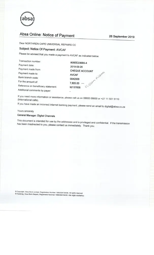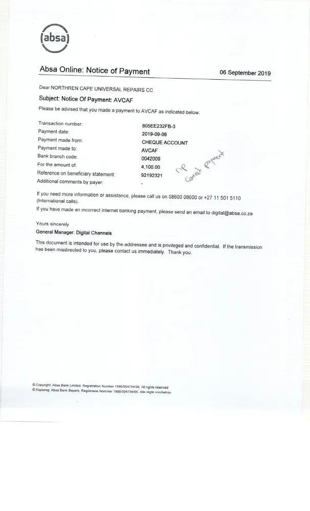 Bank: ABSA.