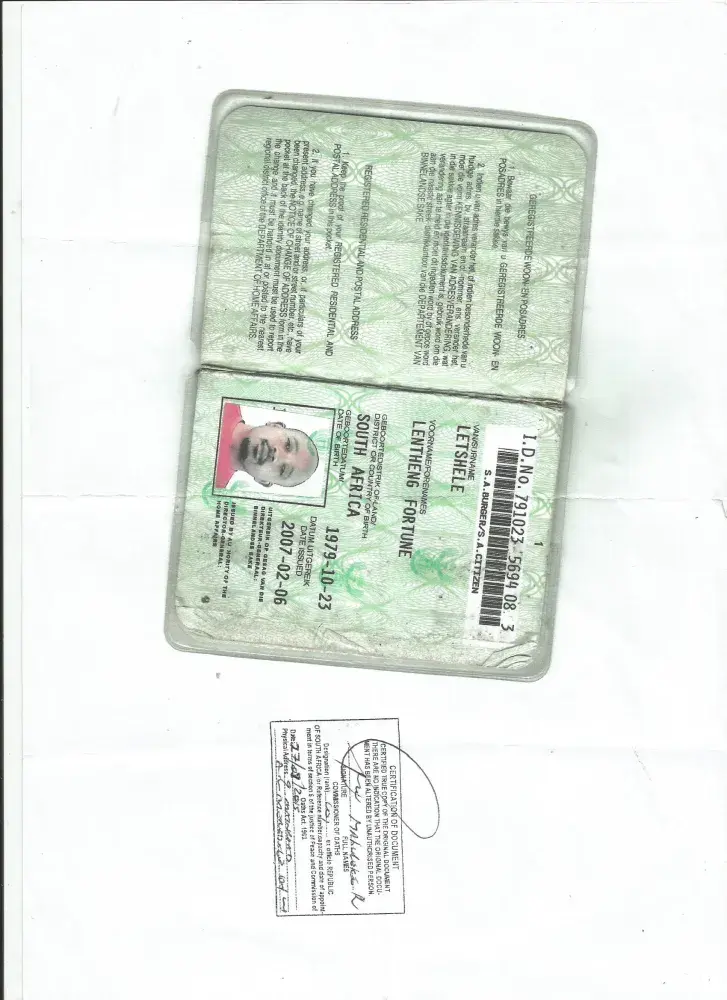 The investigation is done by SAPS and I was provided with the copy of the docket for TRIAL, and the Prosecution provided me with the copy of the check only, which I dispute knowing or in possession of the cheque for cashing at ABSA. The prosecution did not provide me with any document from ABSA showing that I am the person with my ID number who produced the ID book at the branch and cash the cheque. Because I am conducting my own defense in this matter. I will like ABSA to assist me to defend my case, as I am accused of been visited ABSA branch and cashed a the above mentioned Cheque.