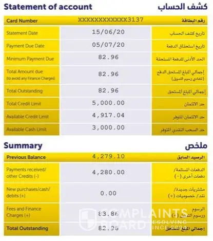 Its clearly mention your last adcb statement that total amount due (to avoid any finance charges) will be 4, 279.10 and I paid 4280 before the due date.
