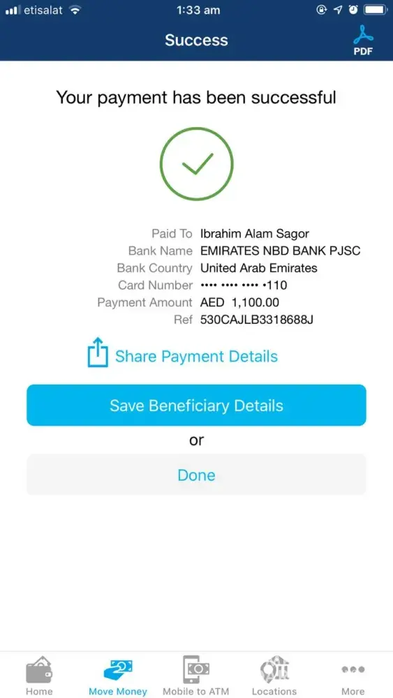 I used the mobile banking app to send money to the other bank/beneficiary. I sent to two beneficiary the first was on 19th (200aed) and second was on 22nd (1, 100aed) of this month. It was successfully transact and it instantly deducted from my account balance and so thats why Im expecting that everything will be fine. So I contacted my friends if they get the money they responded to me that they still didn't get it. So we wait until the weekend over. On Sunday (sep 23, 2018) a 200 aed got credited back on my account and I asked my receivers if they get it already and still no, none of them got those amount on their card. I kept calling customer service from ADIB and they kept telling me the same thing around to wait for another 24 hrs for the transaction. Ive heard a lot of options that they will contact the beneficiary/ other bank if they can check and give me a call but still I didn't receive any call back til' now. I even thought to cancel but they said they will charge me for 100 for cancellation. On my side why I am writing this complain, in the first place it's not even my fault. What is the reason why they made this mobile banking app? to provide an easier and faster transactions right? All I want is, to get/return the pending amount back (1100aed) that is still afloat. Thanks