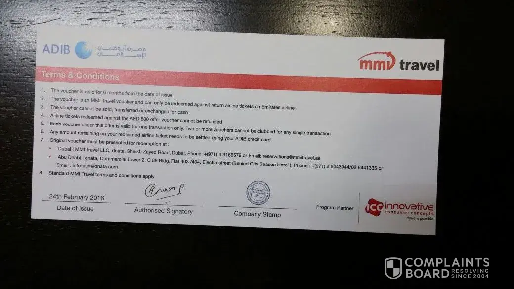 complaint to adib bank, they provide voucher to use in dnata service, and dnata not accepting.